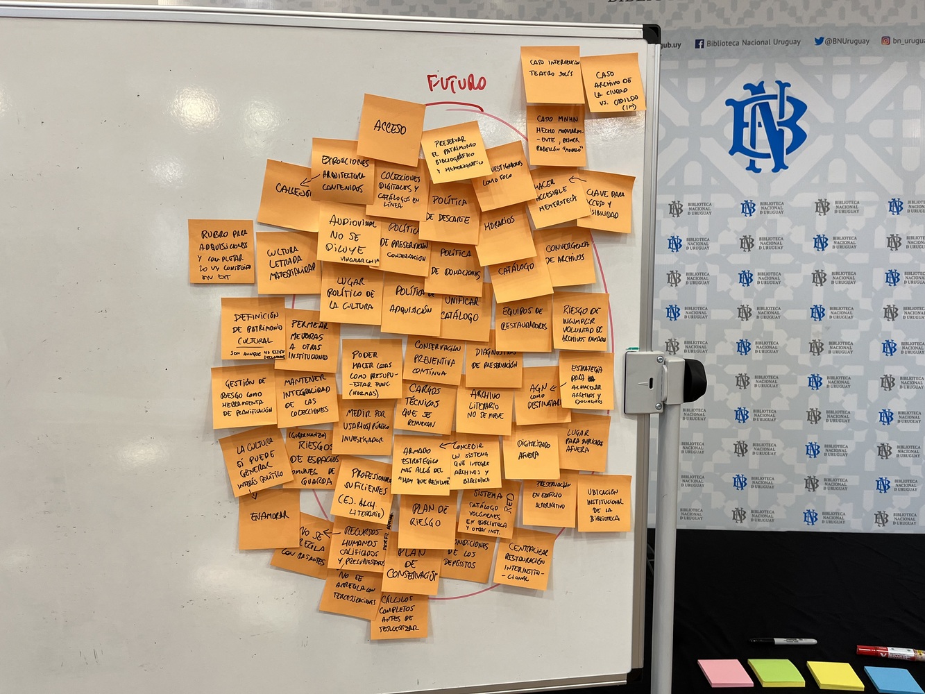 En él se utilizarán metodologías participativas (pensamiento de diseño) para identificar y buscar acuerdos alrededor de los problemas dentro de la temática del grupo, que la Biblioteca Nacional debe enfrentar. Estas definiciones serán insumos para el trabajo de ideación en busca de soluciones, del siguiente taller de este subgrupo.
